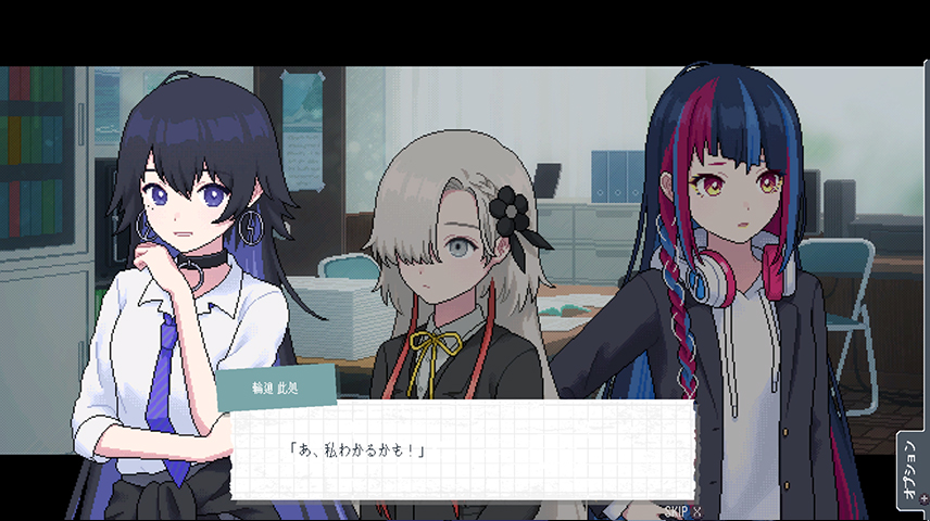 化歩たち新聞部の仲間たちとの交流を通して、物語を読み進めるパートです。物語は、記憶を失ったあなたが神椿市で目を覚ますところから始まります。