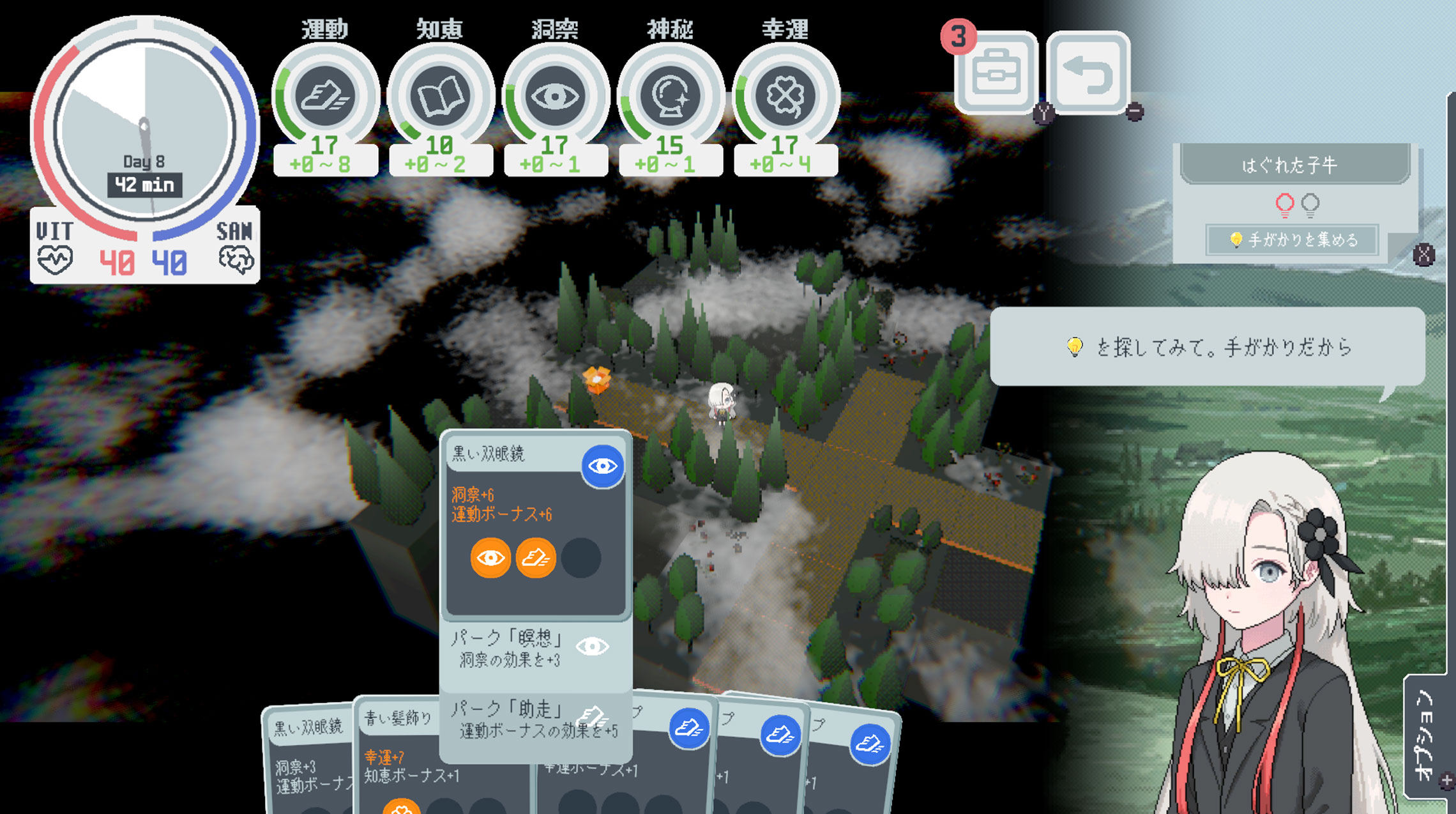 調査パートで調査を進めたりアイテムを入手することで、シナリオを進めることができます。