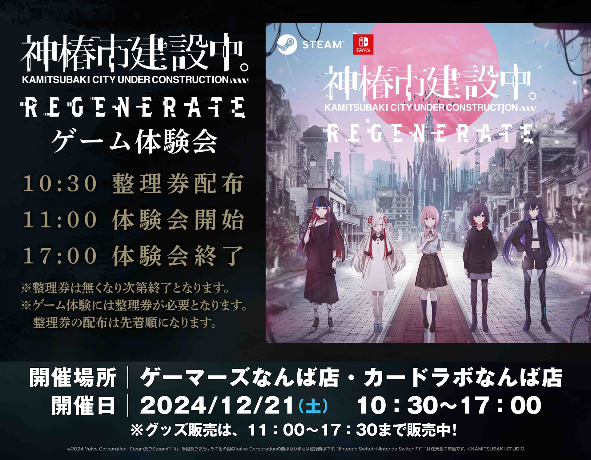 本イベントにて、「神椿市建設中。REGENERATE」が一足早く遊べる先行試遊会を実施いたします。