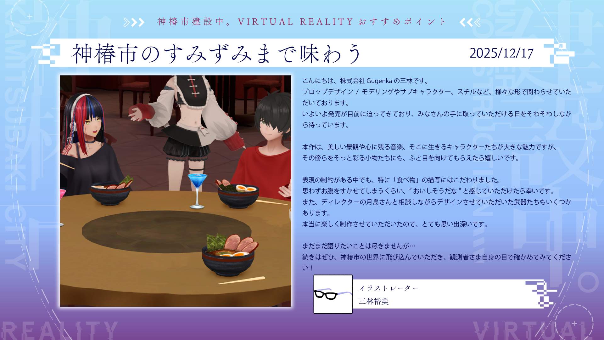 2025年12月19日(金)発売「神椿市建設中。VIRTUAL REALITY」につきまして、発売時点での対応言語が日本語のみとなっており、混乱を招いていることについて改めてお詫び申し上げます。